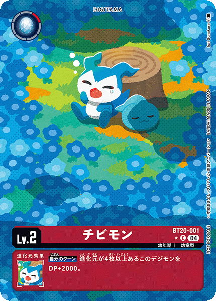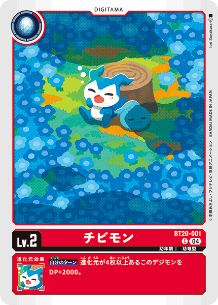 Lv.2 チビモン BT20-001 C 幼年期 | 幼竜型 --- 【自分のターン】進化元が4枚以上あるこのデジモンをDP+2000。