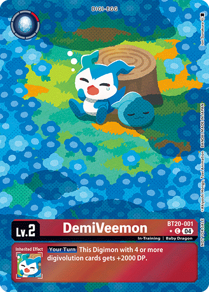 Lv.2 DemiVeemon BT20-001 C in-training | Baby Dragon (Rule) Name: Not treated as having [Vee]. --- [Your Turn] This Digimon with 4 or more digivolution cards gets +2000 DP.