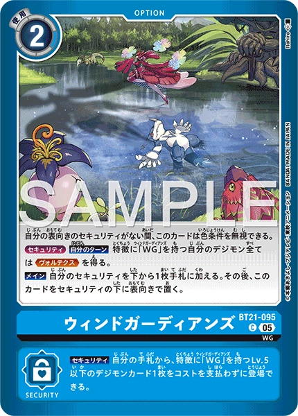 [Security] You may play 1 [WG] trait level 5 or lower Digimon card from your hand without paying the cost.Wind Guardians BT21-095 C