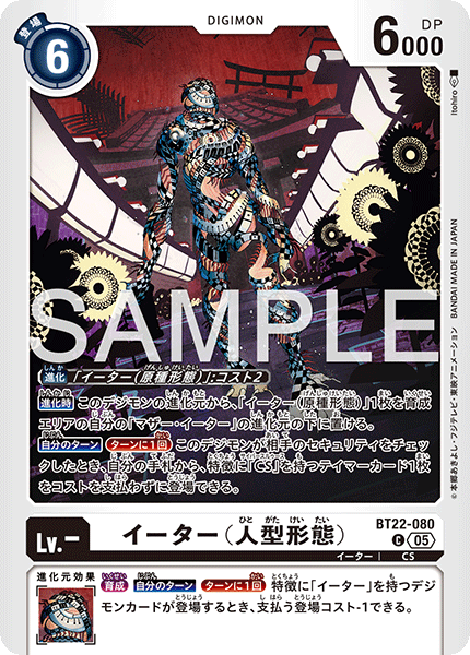 【進化時】このデジモンの進化元から、「イーター(原種形態)」1枚を育成エリアの自分の「マザー• イーター」の進化元の下に置ける。