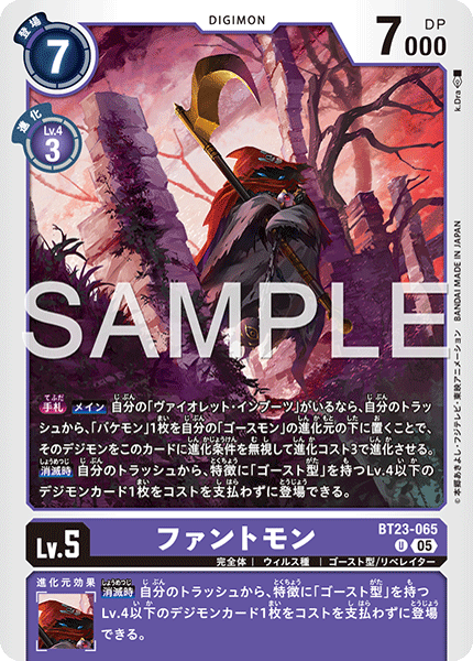 [On Deletion] You may play 1 level 4 or lower Digimon card with the [Ghost] trait from your trash without paying the cost.Lv.5 Phantomon BT23-065 U
