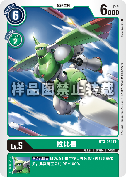 Lv.5 ラピッドモン BT3-052 C 完全体 | ワクチン種 | サイボーグ型 --- 【自分のターン】レスト状態の相手のデジモン1体ごとに、このデジモンのDPを+1000する。