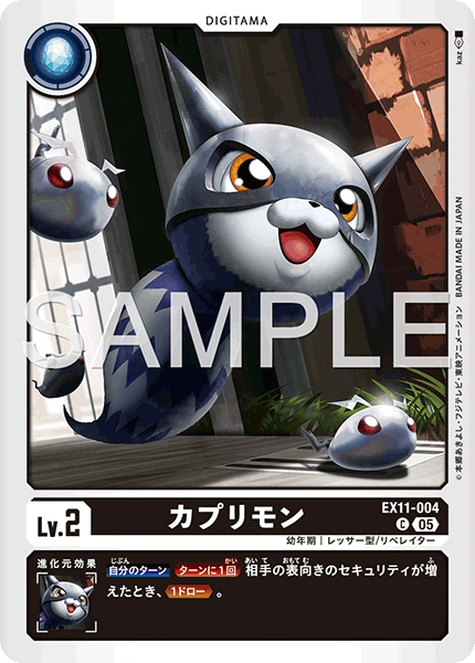 Lv.2 カプリモン EX11-004 C 幼年期 | レッサー型/リベレイター --- 【自分のターン】[ターンに1回]相手の表向きのセキュリティが増えたとき、≪1ドロー≫。