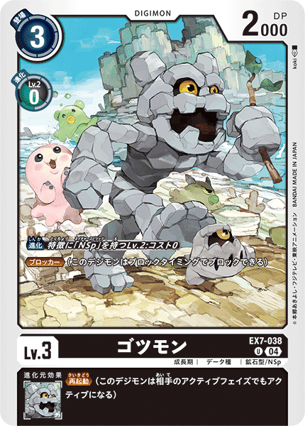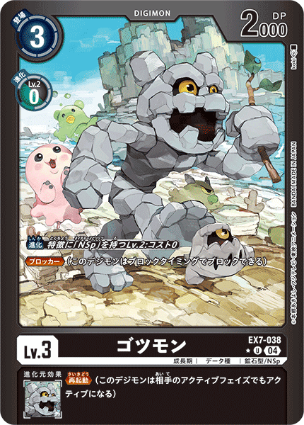 Lv.3 Gotsumon EX7-038 U rookie | Data | Rock/NSp [Digivolve] Lv.2 w/[NSP] trait: Cost 0 <Blocker> --- <Reboot>