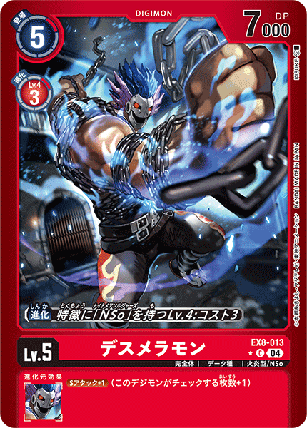 Lv.5 デスメラモン EX8-013 C 完全体 | データ種 | 火炎型/NSo --- ≪Sアタック+1≫(このデジモンがチェックする枚数+1)