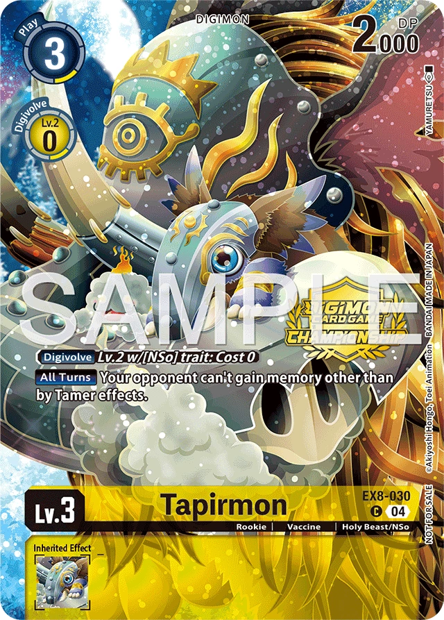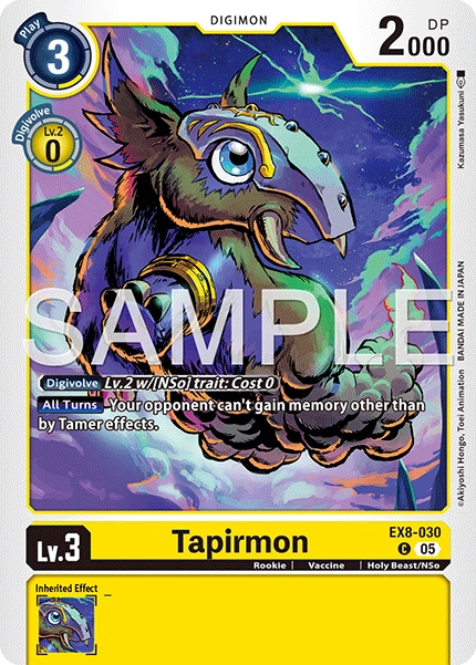 Lv.3 Tapirmon EX8-030 C Rookie | Vaccine | Holy Beast/NSo [All Turns] Your opponent can't gain memory other than by Tamer effects. ---