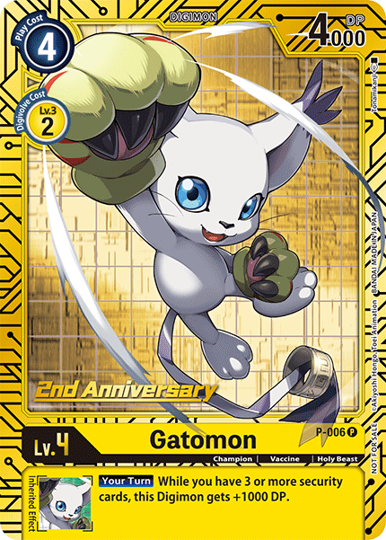 Lv.4 Gatomon P-006 P champion | Vaccine | Holy Beast --- [Your Turn] While you have 3 or more security cards, this Digimon gets +1000 DP.