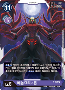 Lv.6 ヴェノムヴァンデモン P-020 P 究極体 | ウィルス種 | 魔獣型 【消滅時】自分のトラッシュから、紫のLv.4以下のデジモンカード1枚をコストを支払わずに登場できる。この効果で登場したデジモンの【登場時】効果は発揮しない。 ---